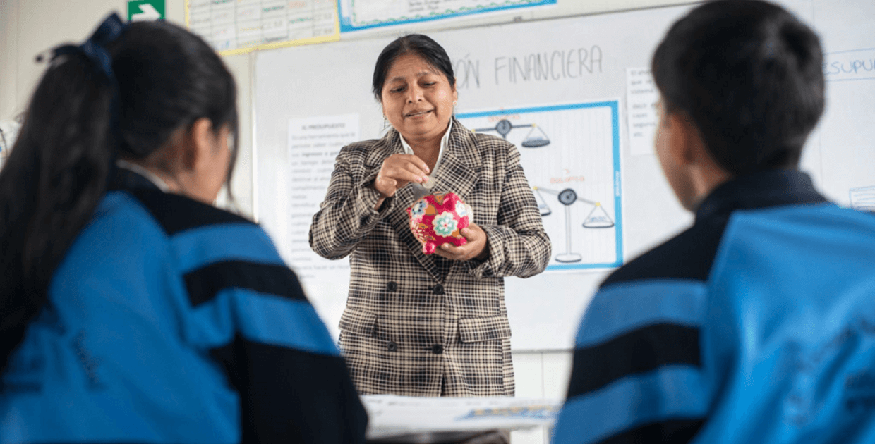 El programa "Educación Financiera en tu Cole" es una iniciativa integral que ha estado operativa desde 2022, trabajando en estrecha colaboración con los gobiernos regionales de Arequipa y Cajamarca, así como las UGEL y DRE de cada región. En 2023, se capacitó a 2500 docentes de 900 escuelas en las regiones participantes. El programa promueve competencias en gestión de finanzas personales y emprendimiento, utilizando un enfoque STEAM + H que fomenta el pensamiento crítico y la innovación.