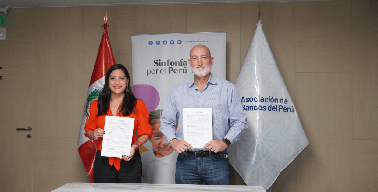 Lima, 18 de agosto de 2023 – La Asociación de Bancos del Perú ha anunciado la firma de un convenio con Sinfonía por el Perú, asociación cultural sin fines de lucro que busca transformar vidas a través de la música. Esta alianza tiene como objetivo impulsar la educación e inclusión financiera en todo el territorio peruano a través de la plataforma gratuita "Finanzas Al Toque".