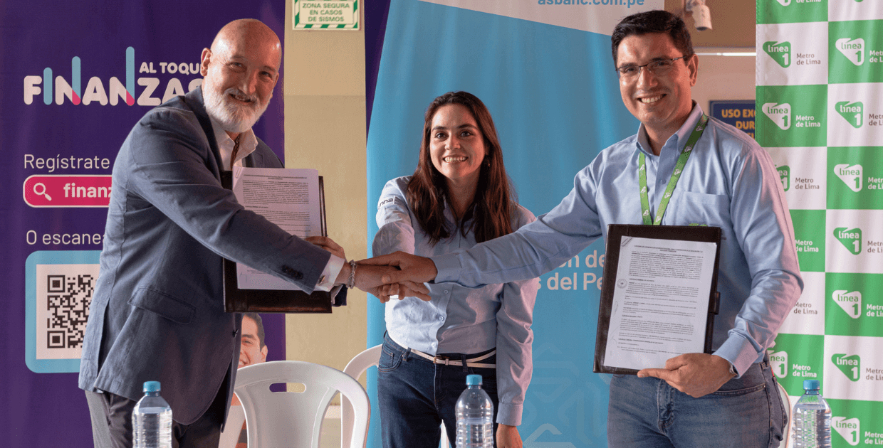 La alianza estratégica que han suscrito la Línea 1 del Metro de Lima y la Asociación de Bancos del Perú (ASBANC), busca ampliar el alcance de las iniciativas de educación financiera que desarrolla la Asociación, a través de acciones interinstitucionales coordinadas que contribuyan al fortalecimiento de la inclusión financiera. La ceremonia de firma tuvo lugar en la Estación "Cabitos" de la Línea 1 del Metro de Lima.